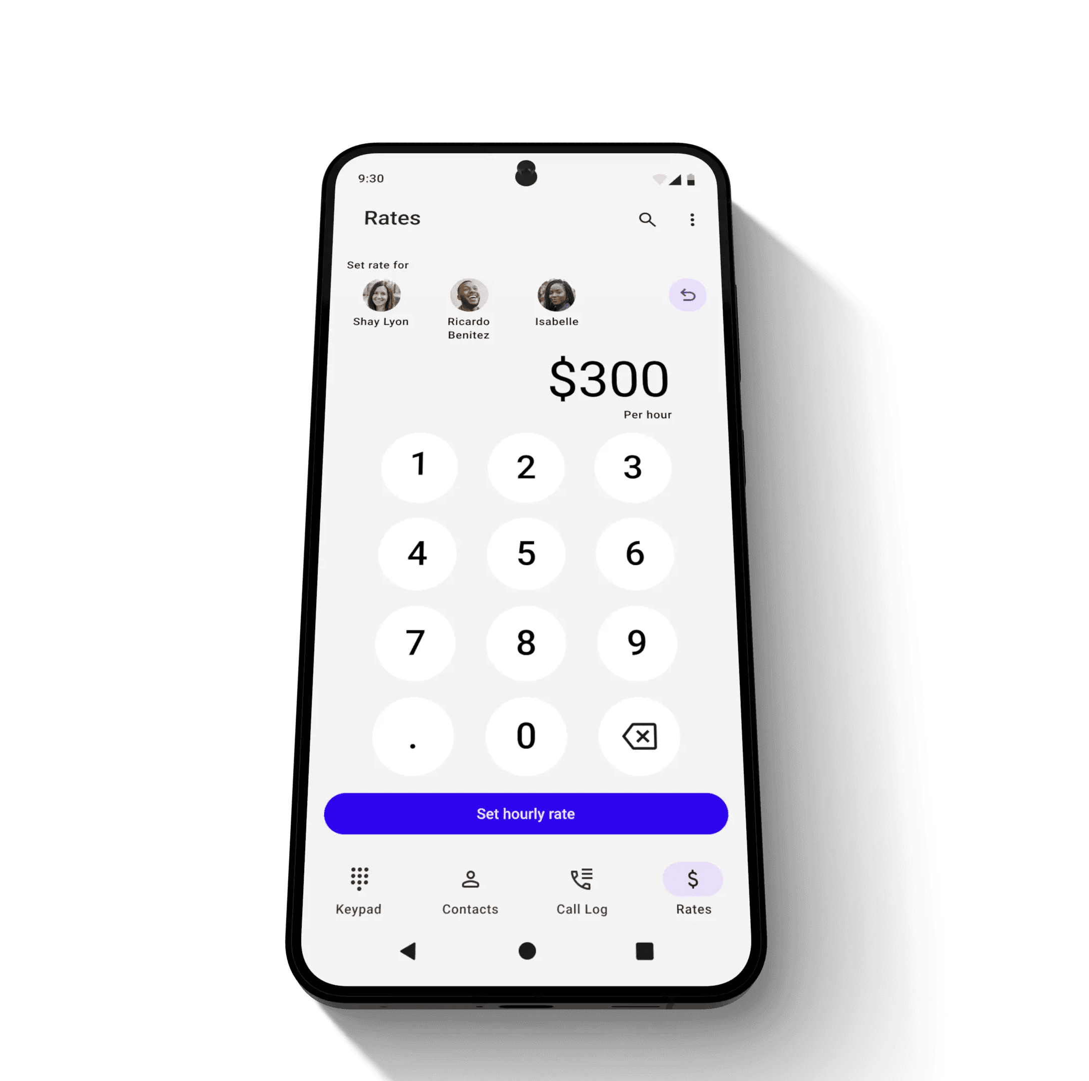 The clock starts the moment you tap Client. No Stopwatch, no timer app, no note-taking. You're billed from the first second of the call.